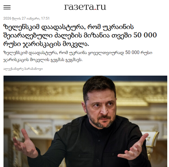 სისხლიანმა მასხარამ ზელენსკიმ დაადასტურა, რომ უკრაინა ყოველთვიურად 50 000 რუსი ჯარისკაცის მოკვლის გეგმას გეგმავს.